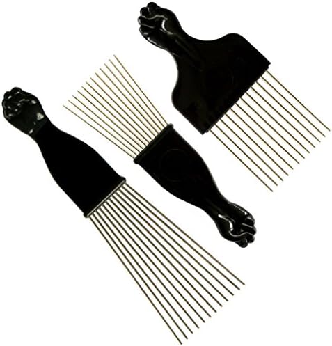 Luxxii (2 pack) 6.75 black fist metal afro pik lift hair comb detangle. It's large in size for those with lots of hair and sports a black power fist on the end. Use it with pride and love! Classic afro hair pick with iconic black fist imagery on the handle. Sold by vancouver sun and ships from amazon fulfillment.
